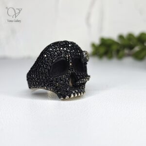 انگشتر نقره مردانه ترک با نگینهای اتمی مشکی کد8410