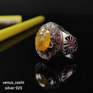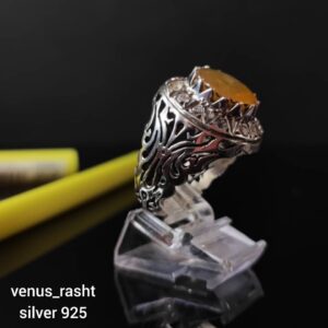 انگشتر نقره مردانه با سنگ یاقوت زرد اصل و معدنی کد 1005