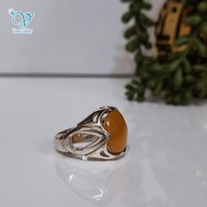 انگشتر نقره مردانه سنگ عقیق زرد شرف الشمس