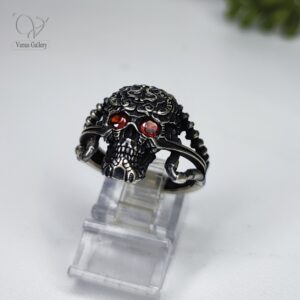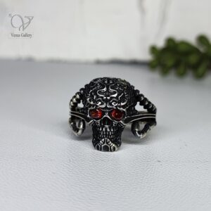 انگشتر نقره مردانه مدل اسکلت چشم قرمز