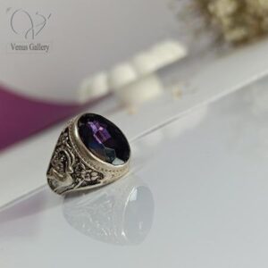 انگشتر نقره مردانه طرح آمیتیست با قلمکاری گل و گوزن کد 8086