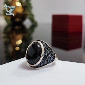 انگشترنقره مردانه سنگ اونیکس مشکی کد 5216