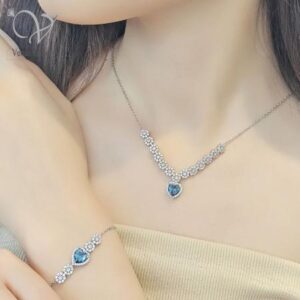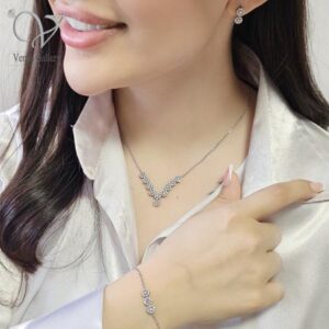 سرویس نقره جواهری قلبی ظریف زنجیری زنانه