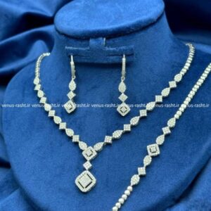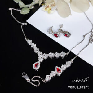 سرویس نقره جواهری ظریف و زنجیری ساخته شده با قالب طلا کد 8927