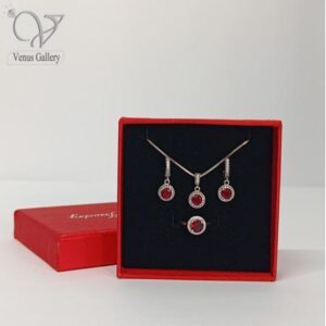 نیم ست نقره زنانه نگین قرمز به همراه انگشتر ست کد 8936