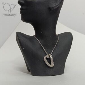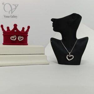 نیم ست نقره زنانه طرح قلب تو خالی و فانتزی نگین اتمی کد 8816