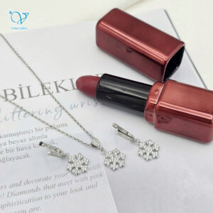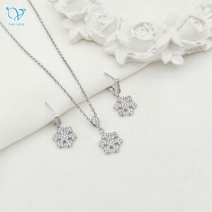 نیم ست نقره زنانه طرح گل رز جواهری کد 9212