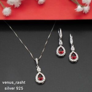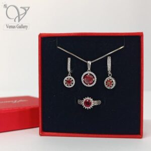 نیم ست نقره نگین قرمز زنانه 4747
