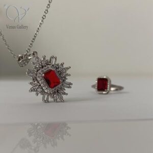 ست گردنبندو انگشتر نقره نگین قرمز جواهری