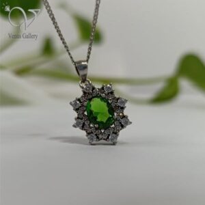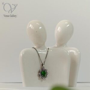 گردنبند نقره زنانه سنگ سنتتیک سبز کد 8246