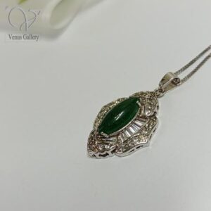 گردنبند نقره زنانه سنگ یشم سبز اصل نگین باگت و جواهری کد8237