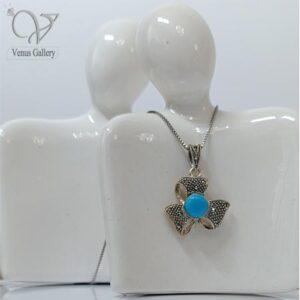 گردنبند نقره زنانه نگین مارکازیت سیاه قلم برند هانگ با سنگ فیروزه کد 4923