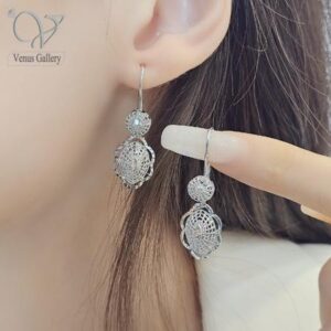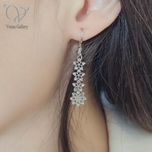 گوشواره نقره زنانه تمام تراش آویز مدل گل ستاره ای