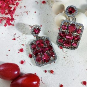 گوشواره طرح یاقوت نگین قرمز نقره کد 2326
