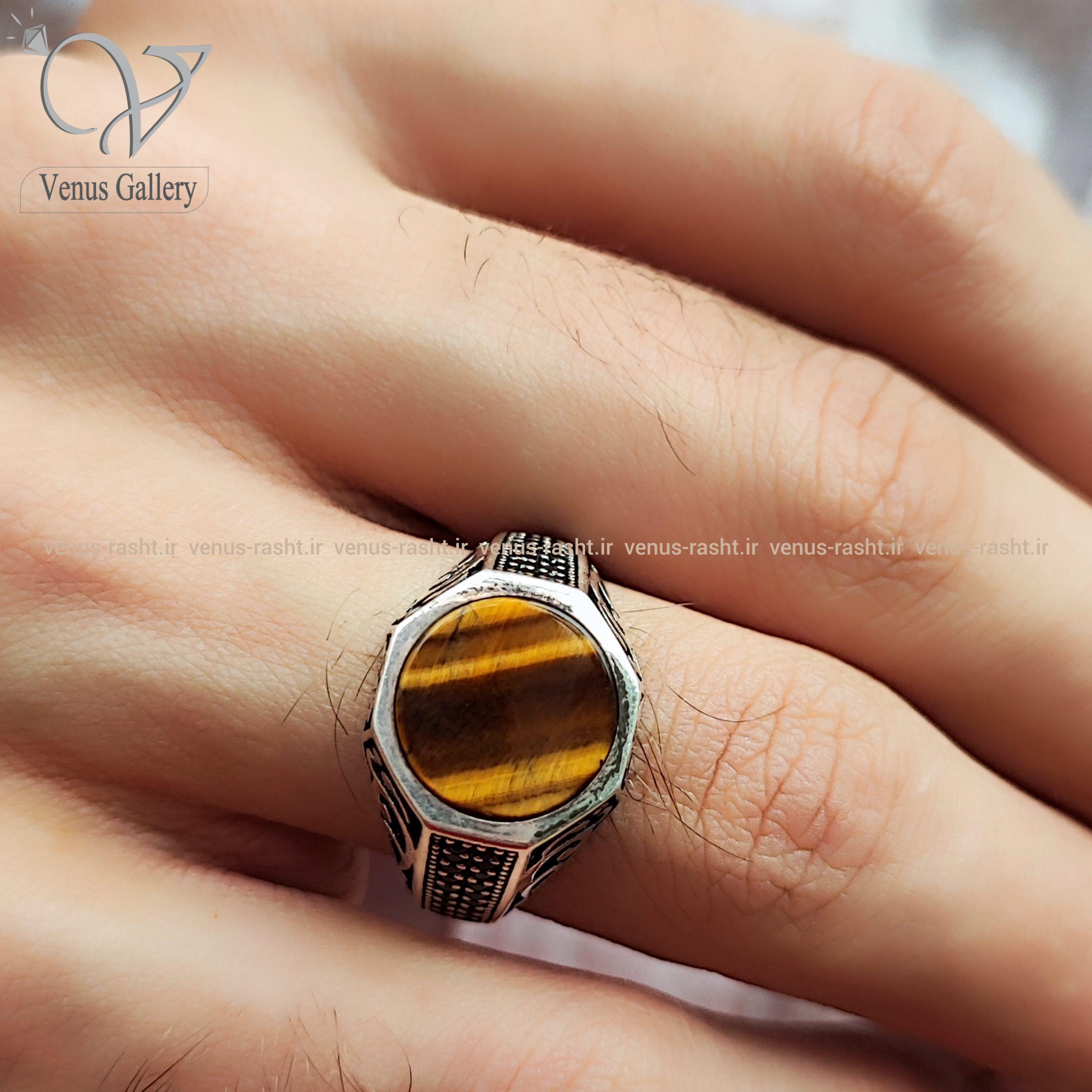 انگشتر نقره مردانه با سنگ چشم ببر کد 2351