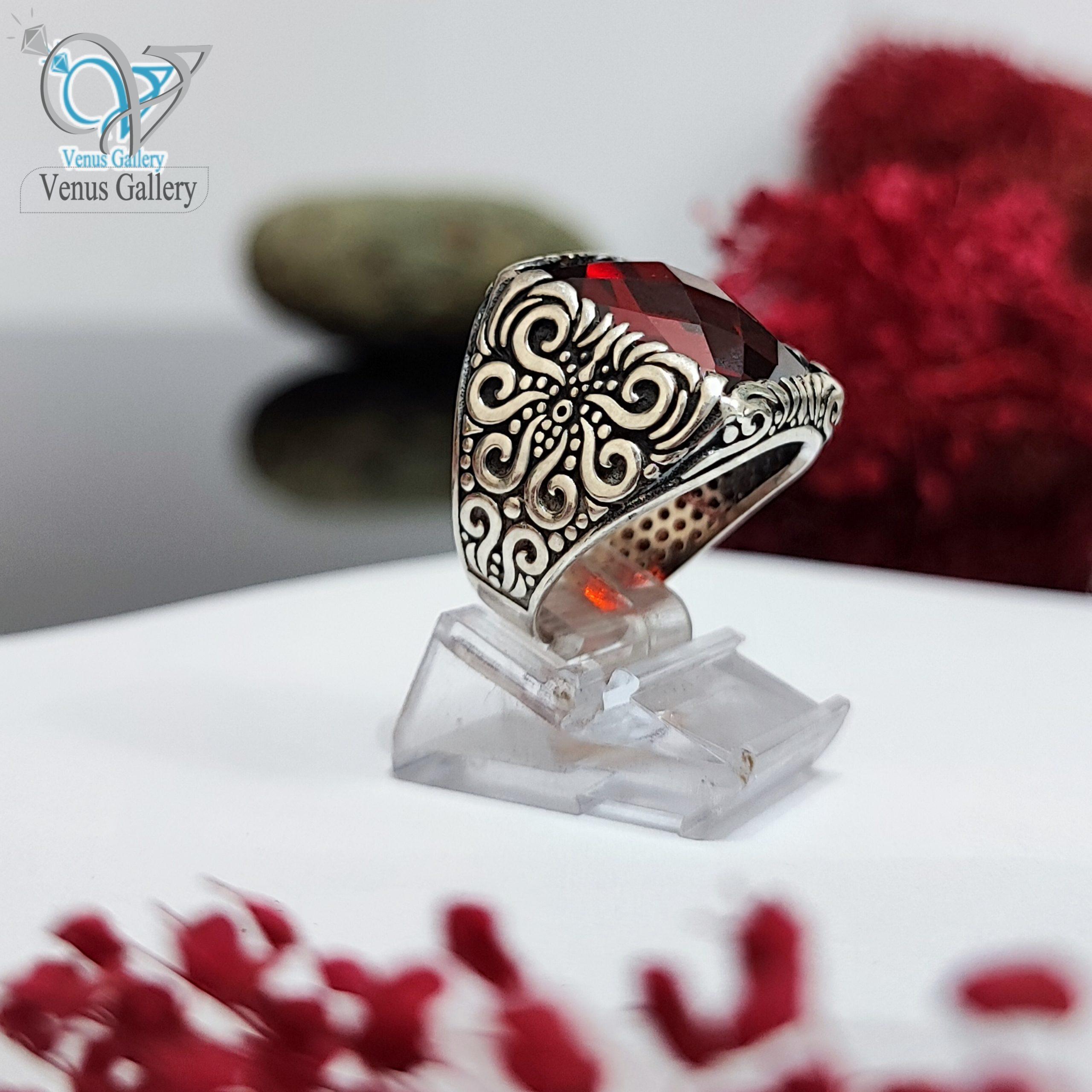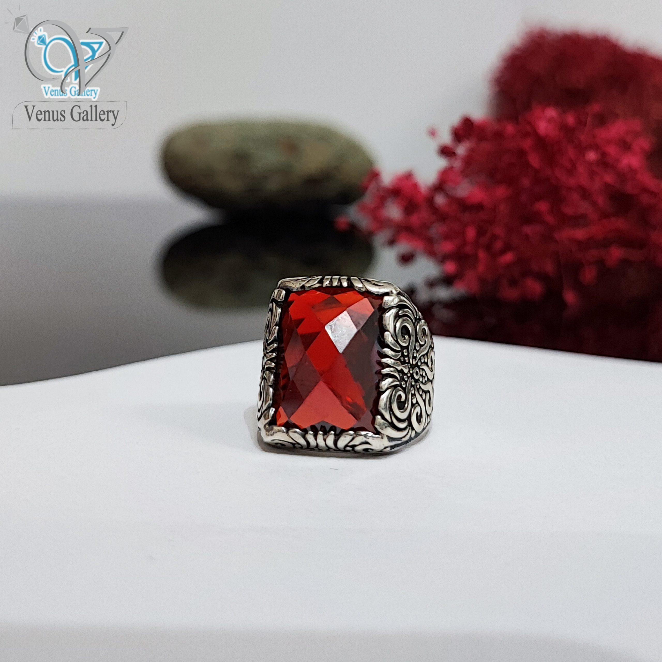 انگشتر نقره مردانه سنگ سنتتیک قرمز کد 3195