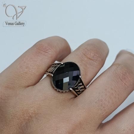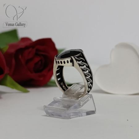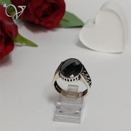 انگشتر نقره مردانه مدل کارتیر سنگ اونیکس چند وجهی بیضی کد 5464