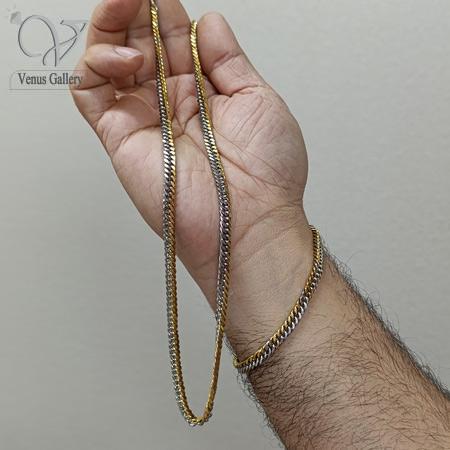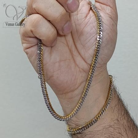 ست گردنبند و دستبند کارتیرپسرانه استیل دو رنگ طلایی و نقره ای کد 9232