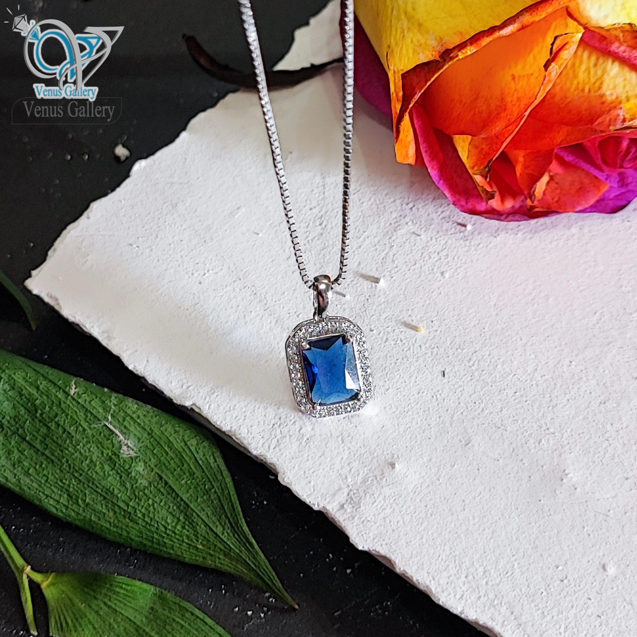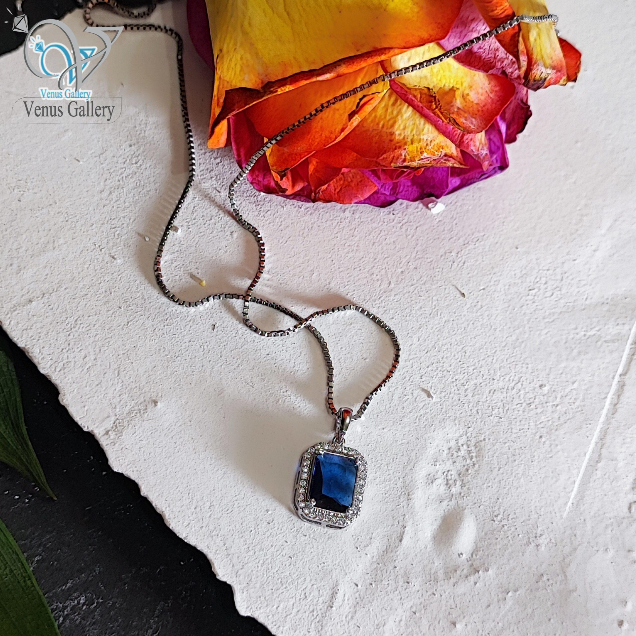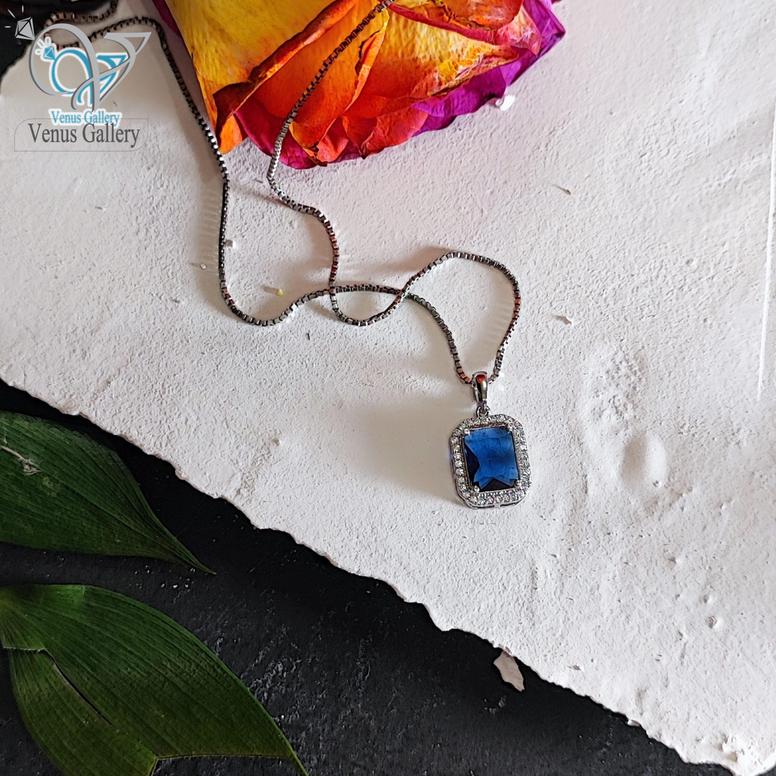مدال نقره نگین مستطیلی آبی