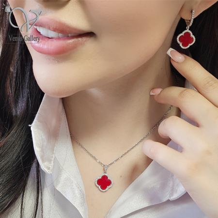 تصور کن که هر کدوم از این رنگها، با ظرافت خاصی داخل اون برگهای شبدر چهارپر قرار گرفته و درخشش نقره رو دوچندان کرده. این نیمست شامل یه گردنبند ظریف با آویز ونکلیف و یه جفت گوشواره آویز با همون طرحه. یه ترکیب کامل و جذاب که میتونه استایل ساده تو رو به یه شاهکار تبدیل کنه.