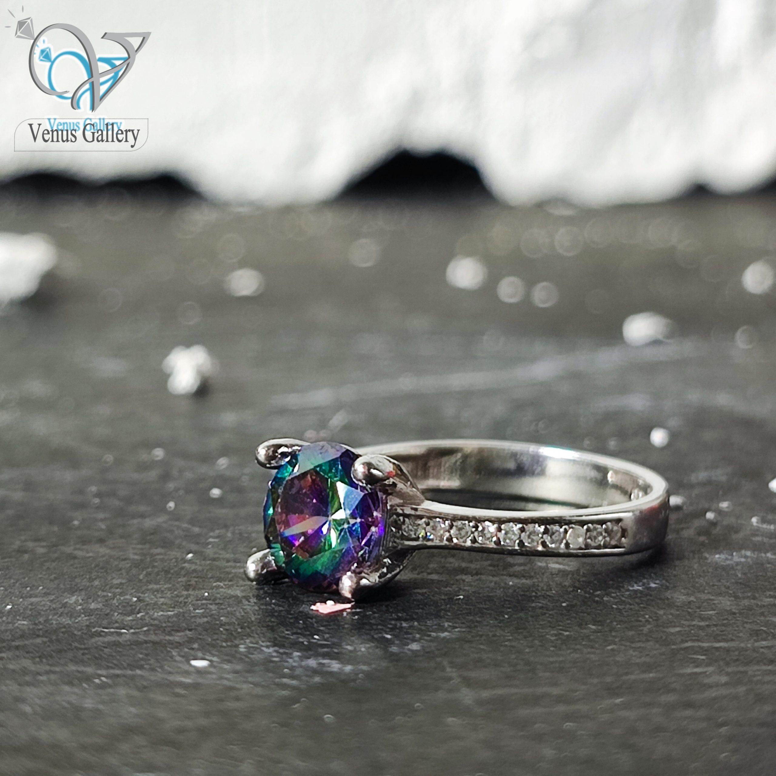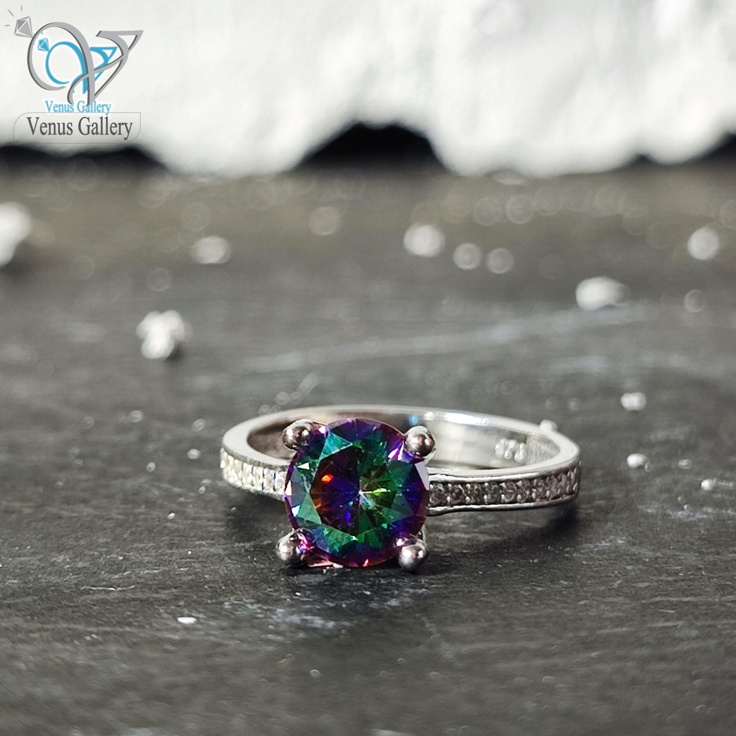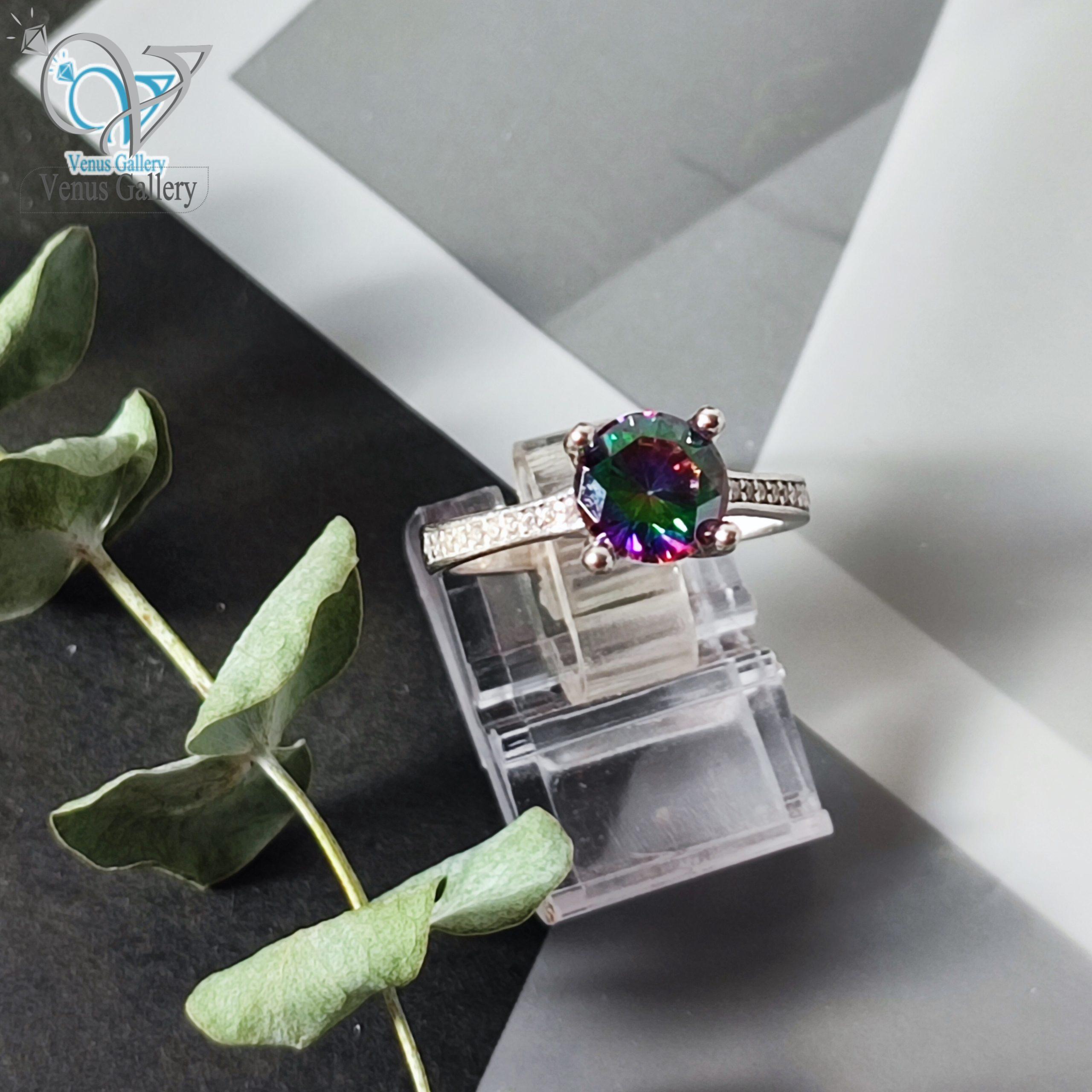 انگشتر تک نگین نقره سنگ توپاز 7 رنگ کد 3029