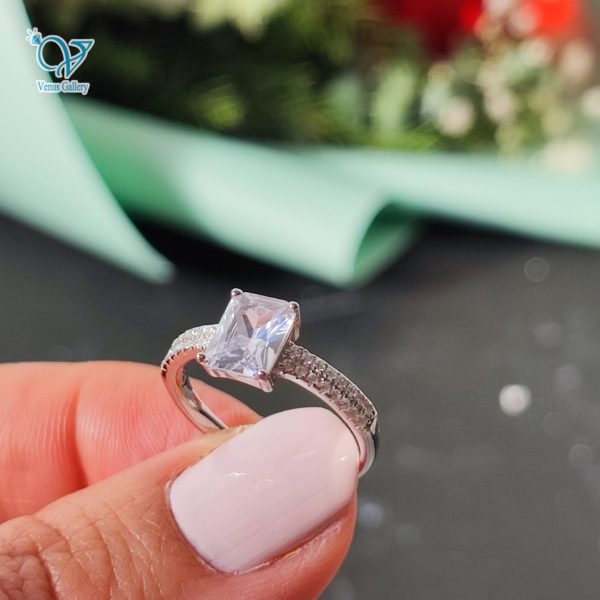 انگشتر تک نگین نقره مستطیلی تراش جواهری کد 5333