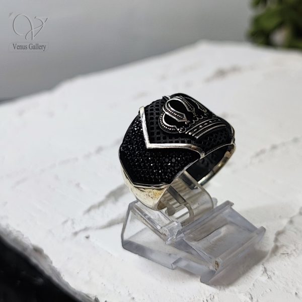 انگشتر نقره اصل مردانه مدل تاج سیاه قلم