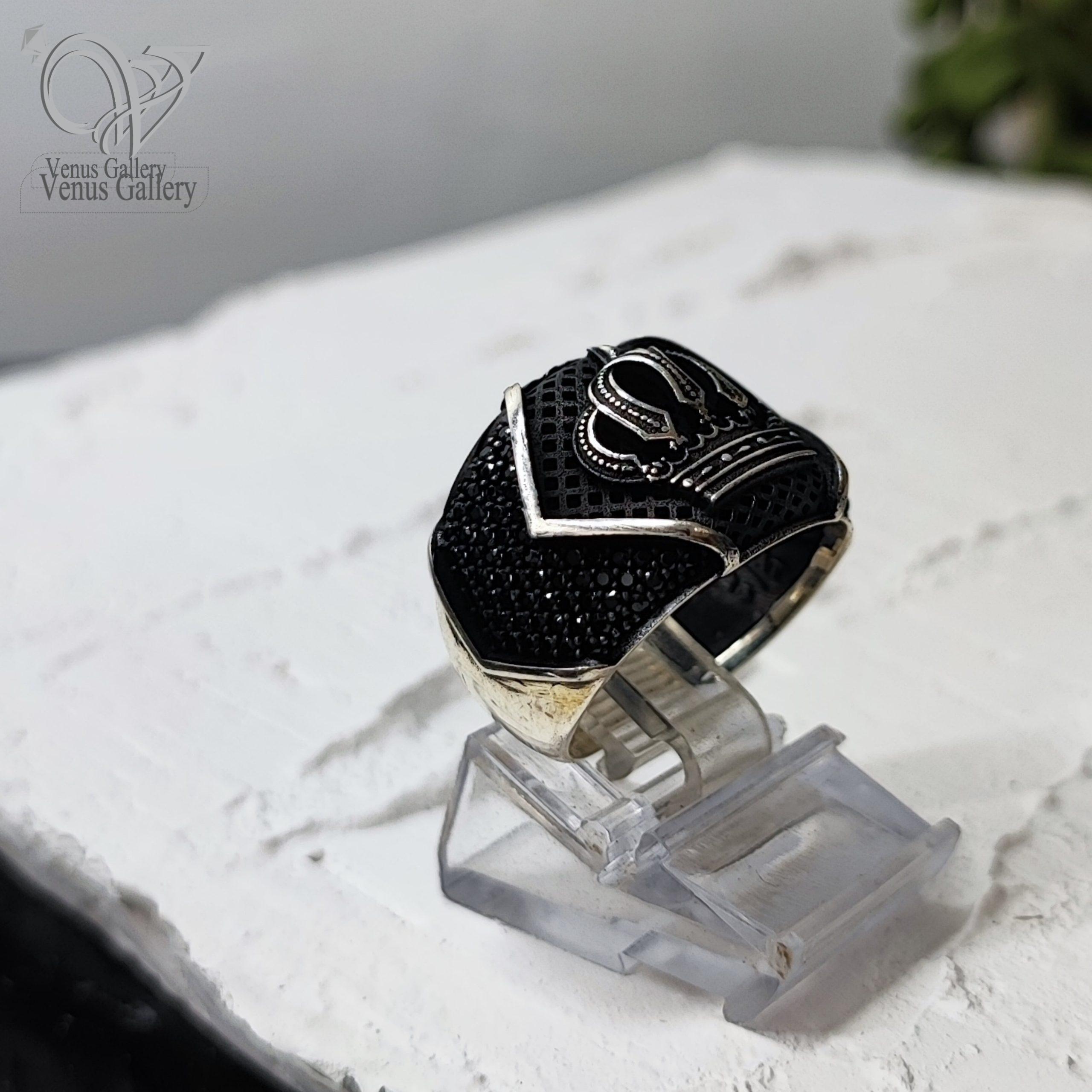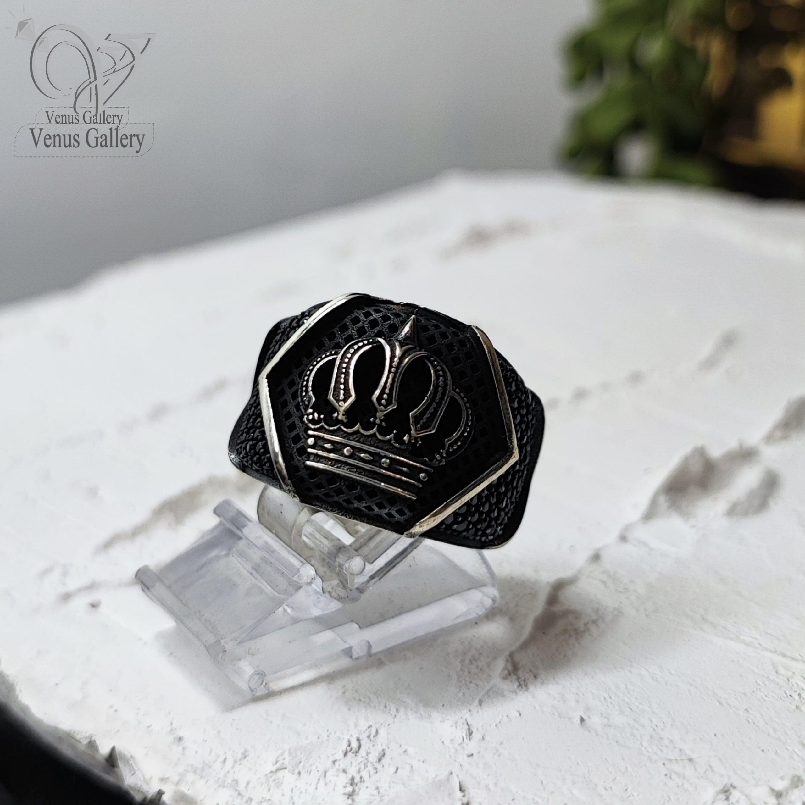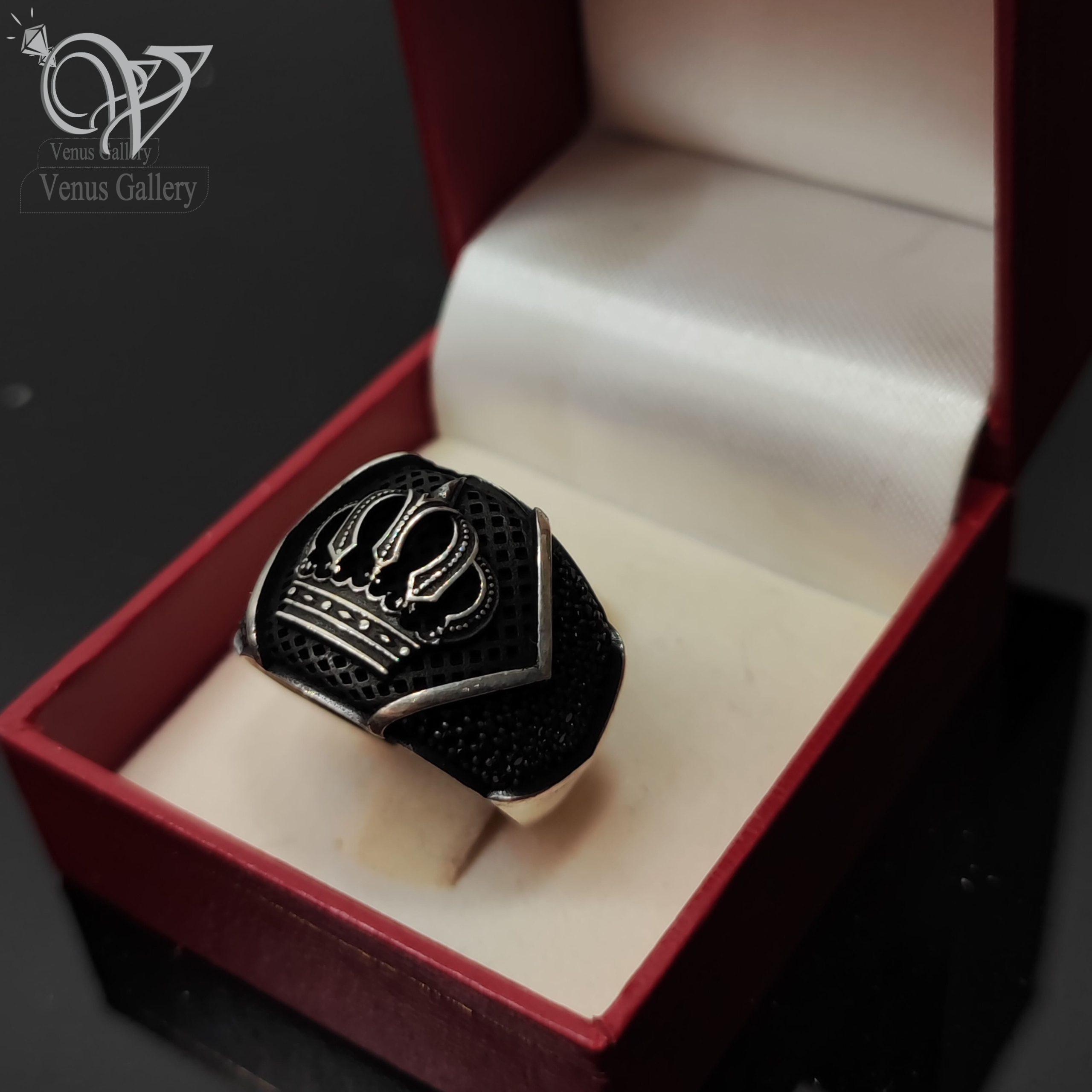 انگشتر نقره اصل مردانه مدل تاج سیاه قلم کد 4044