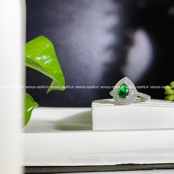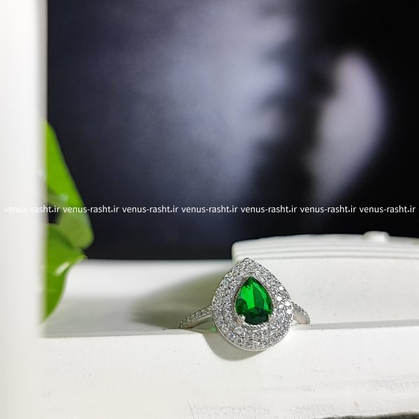 انگشتر نقره اشکی نگین سبز با وزن حدودی 3 گرم