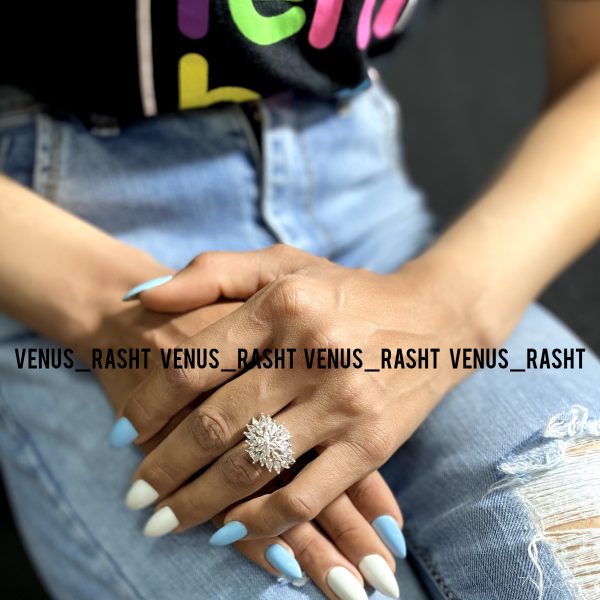 انگشتر نقره زنانه جواهری با نگین های برلیان اتمی به عنوان یک انگشتر پر نگین شناخته می شود