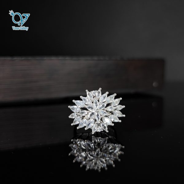 انگشتر نقره زنانه جواهری با نگین های برلیان اتمی گزینه مناسبی برای افرادی است که به دنبال خرید انگشتر زنانه شیک هستند