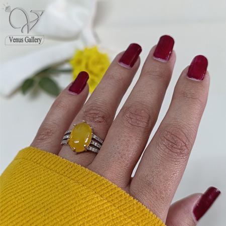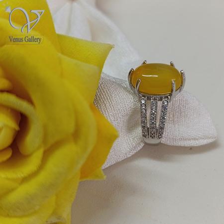 انگشتر نقره زنانه با سنگ عقیق زرد و دعای شرف الشمس کد 5954