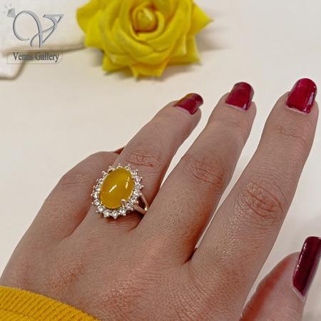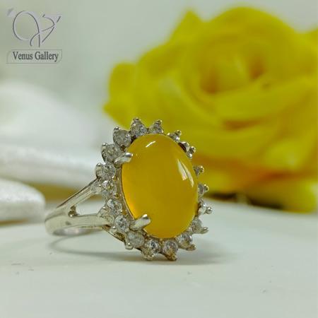انگشتر نقره زنانه جواهری با سنگ عقیق زرد کد 5970