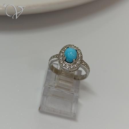 انگشتر نقره زنانه جواهری با سنگ فیروزه نیشابور اصل کد7826