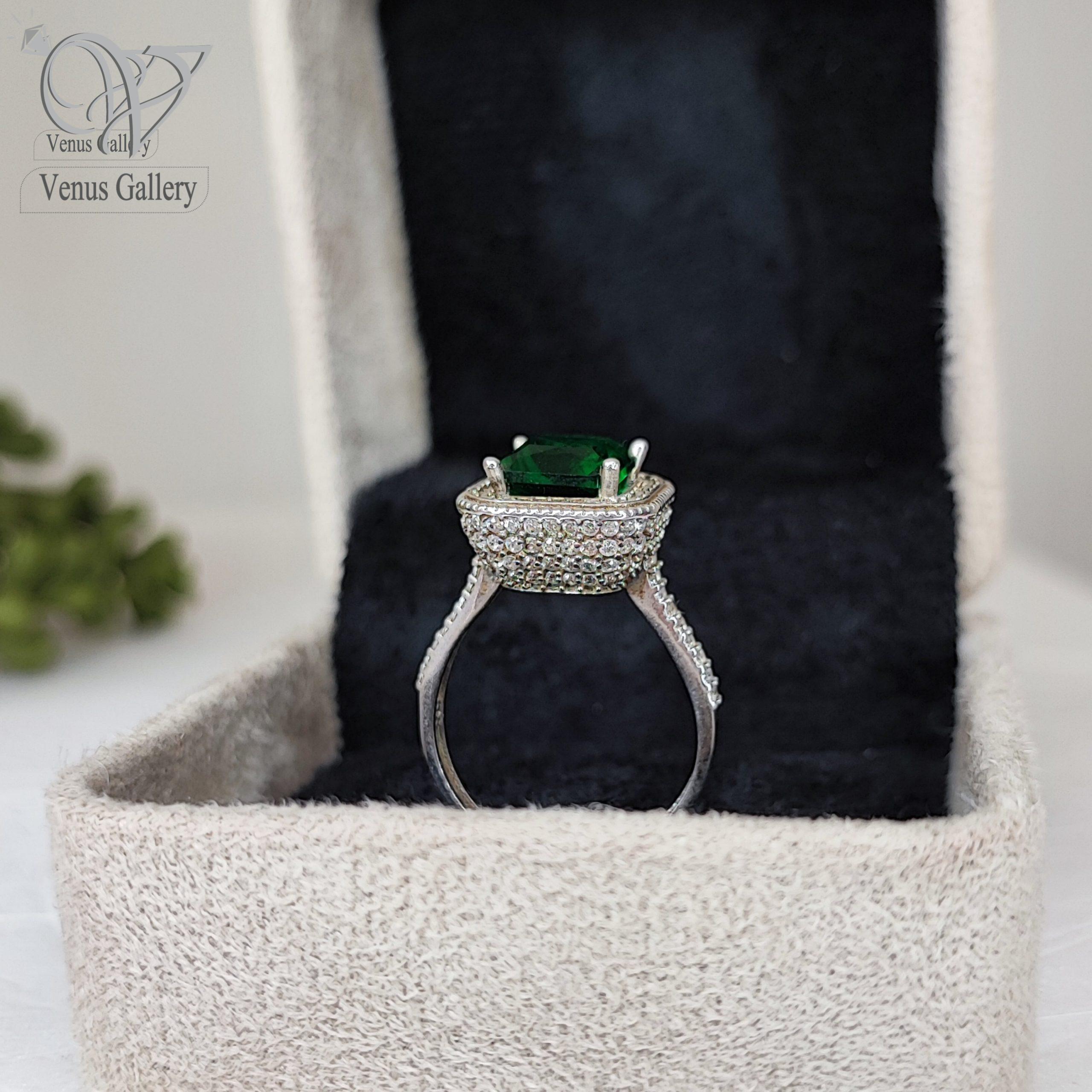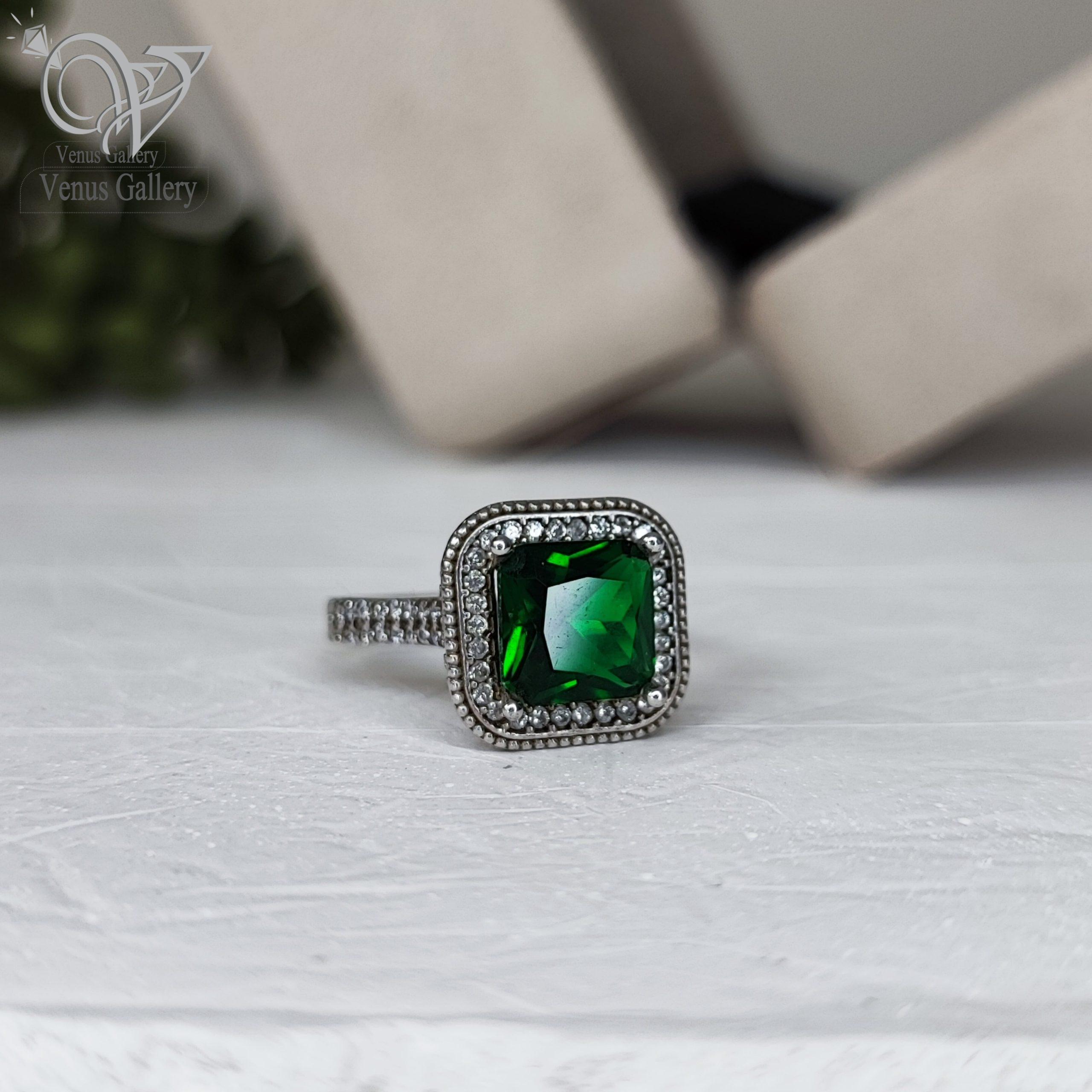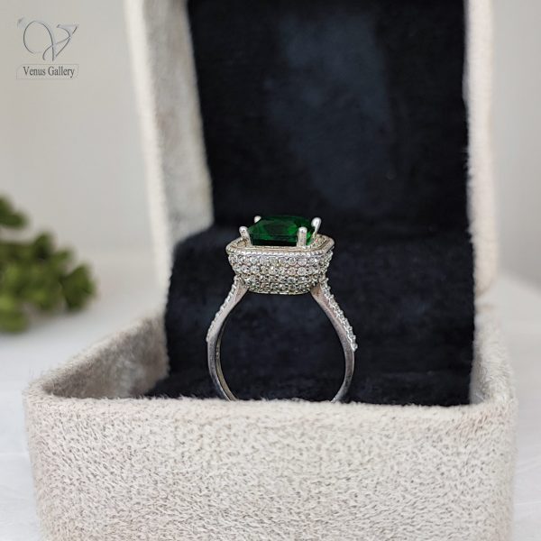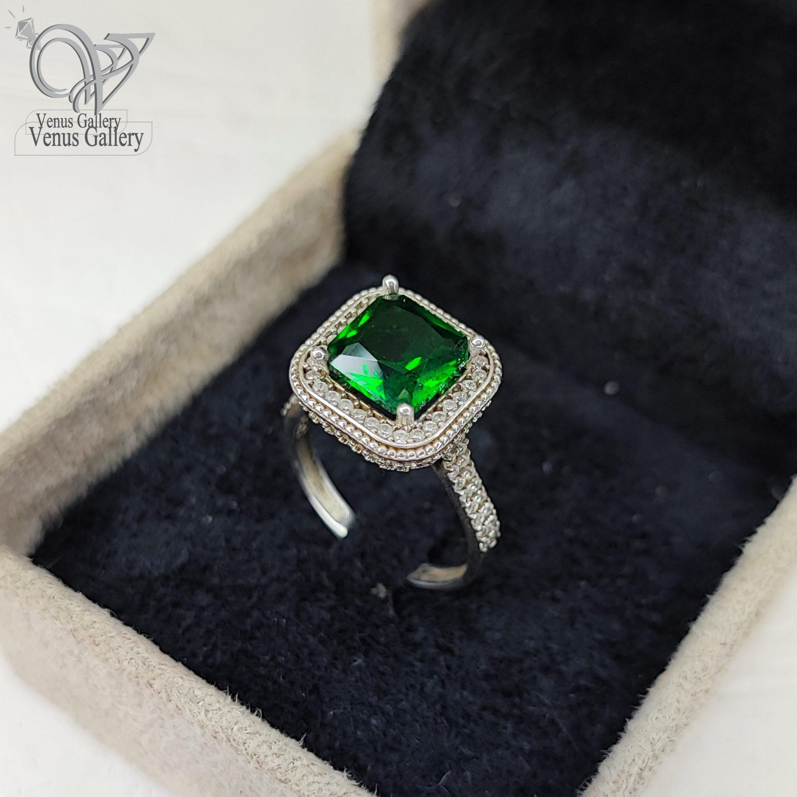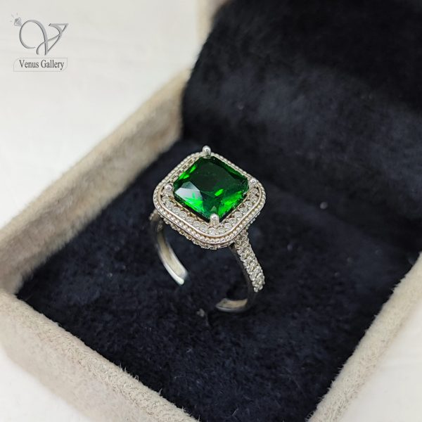 انگشتر نقره زنانه جواهری نگین سبز مربعی کد 6619