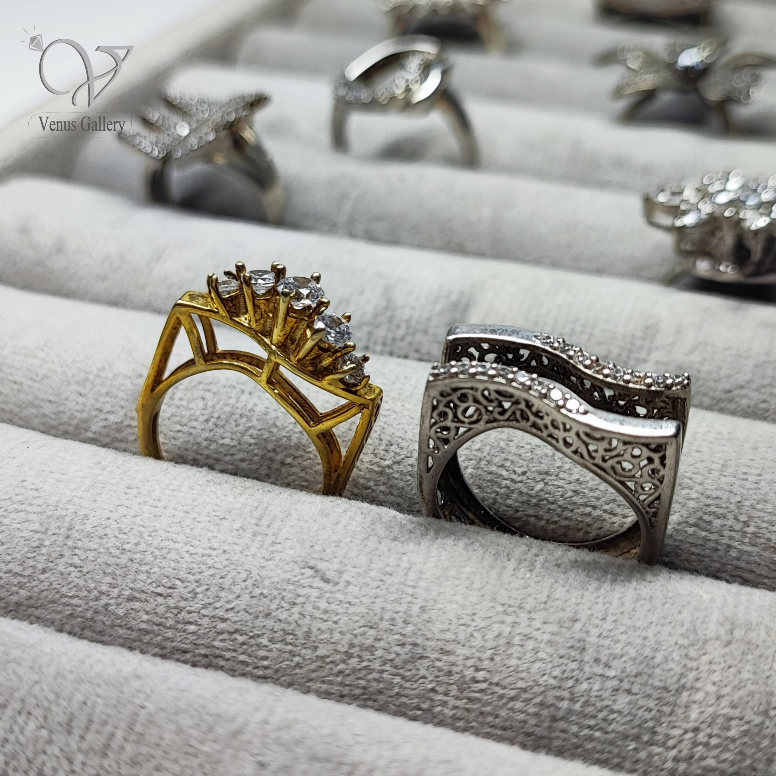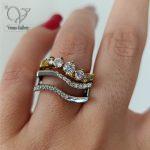 انگشتر نقره زنانه با قابلیت دو حلقه ی تو در تو که دارد این انگشتر را بسیار خاص و منحصر به فرد کرده است.