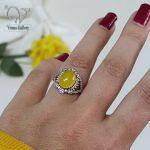 انگشتر نقره زنانه با سنگ عقیق زرد و دعای شرف الشمس کد9293