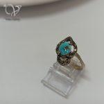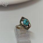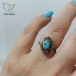 انگشتر نقره زنانه سیاه قلم نگین مارکازیت و سنگ فیروزه نیشابور کد 7832