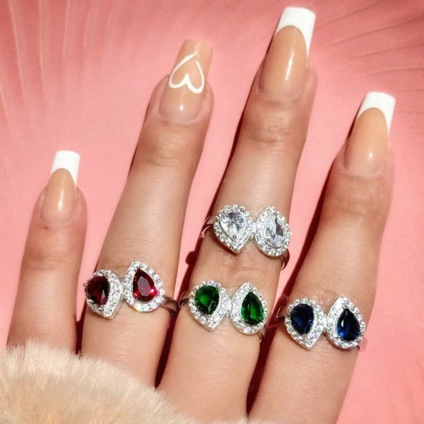 انگشتر نقره زنانه طرح اشک نگین رنگی (قرمز / سبز / کریستالی / آبی )کد 1277