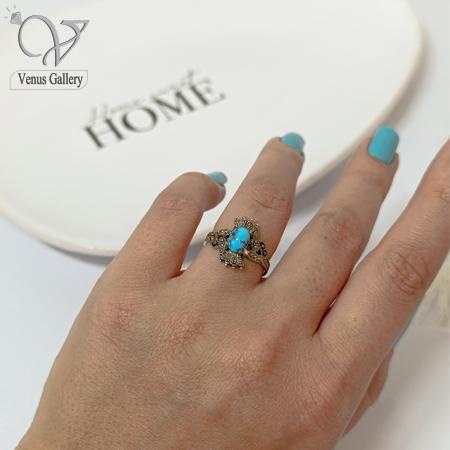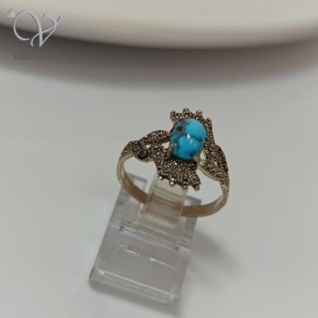 انگشتر نقره زنانه فیروزه نیشابور اصل نگین مارکازیت کد 4829