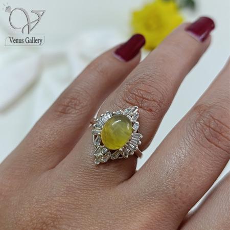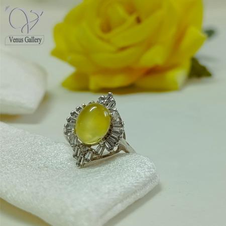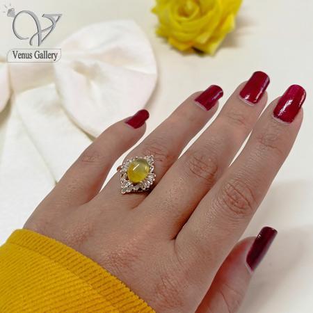 انگشتر نقره زنانه نگین جواهری سنگ عقیق زرد با امکان حکاکی دعای شرف الشمس کد 5972