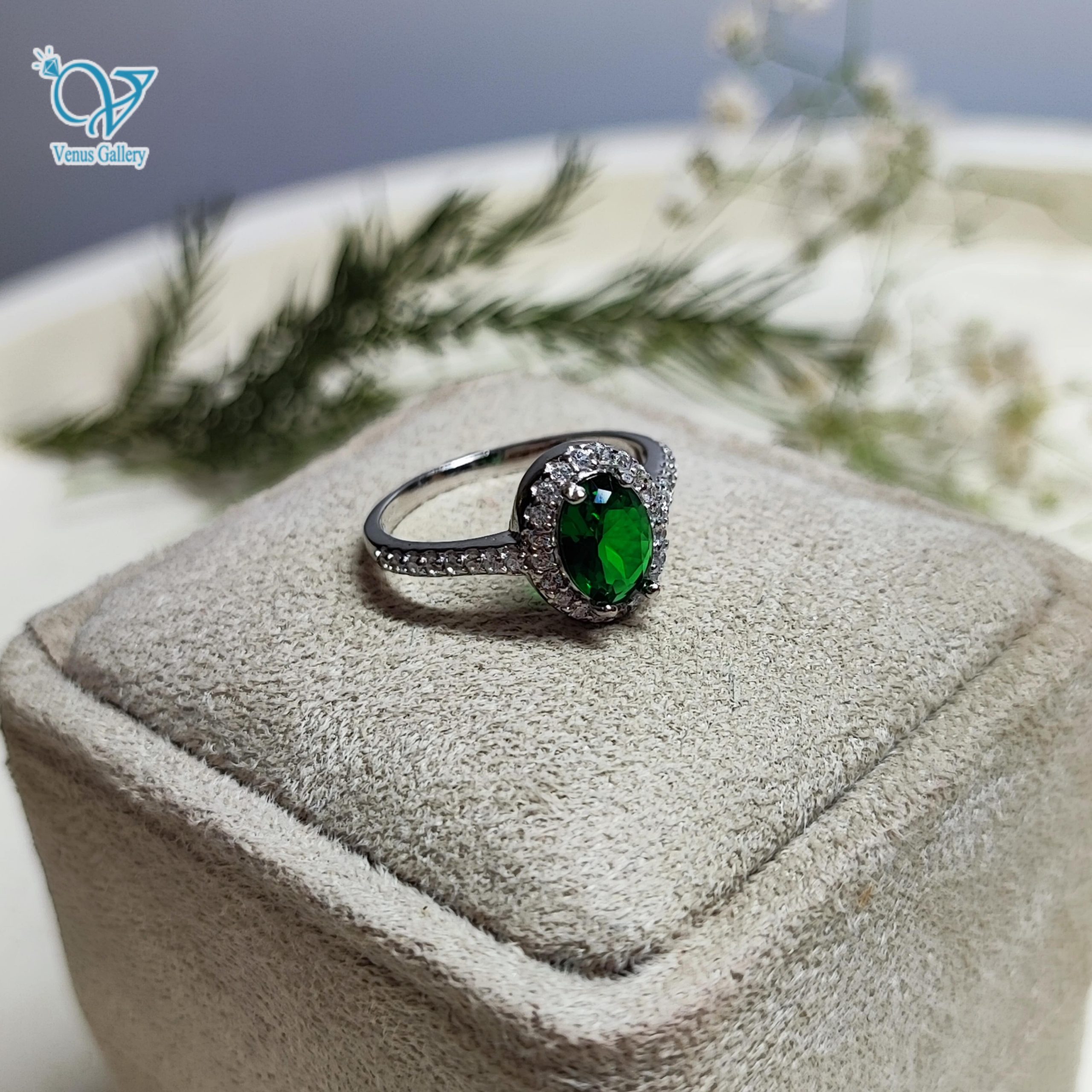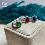 انگشتر نقره زنانه مدل رولکس با نگین سبز و قرمزکد 6365