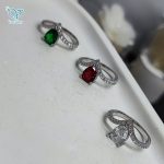 انگشتر زنانهنقره طرح اشک با نگینهای از نوع زیرکونیا دارای نگین اصلی در سه رنگ سبز، قرمز ، کریستالی (بی رنگ)است که آن نیز از نوع زیر کونیا می باشد. طرح انگشتر به صورت اشک و تاج است.و می تواند به عنوان هدیه ای مناسب برای مادر، همسر،دوست و .. در مناسبتهای مختلف می باشد. با توجه به کیفیت و زیبایی این انگشتر همواره به عنوان یکی از اولویتهای خرید انگشتر زنانه می تواند مطرح باشد.