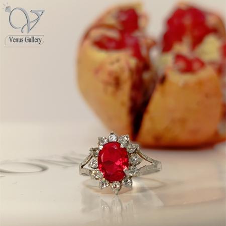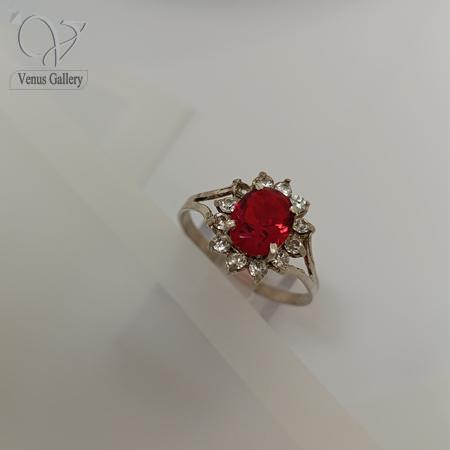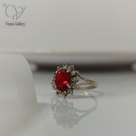 انگشتر نقره زنانه نگین قرمز طرح گل جواهری کد 4813