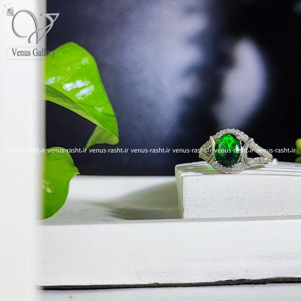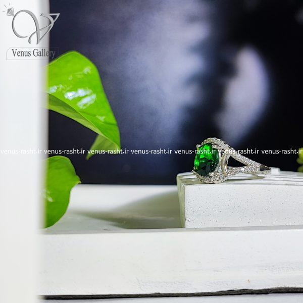 انگشتر نقره ظریف جواهری نگین سبز زنانه بدون تغییر رنگ و افت کیفیت می باشد
