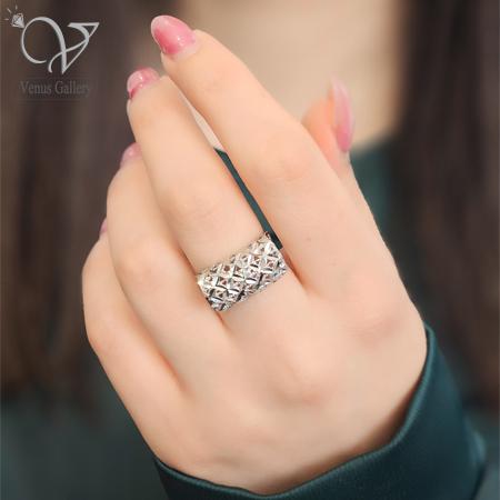 انگشتر نقره مدل تراش طرح طلا سفید (هدیه شیک روز مادر) کد 4644