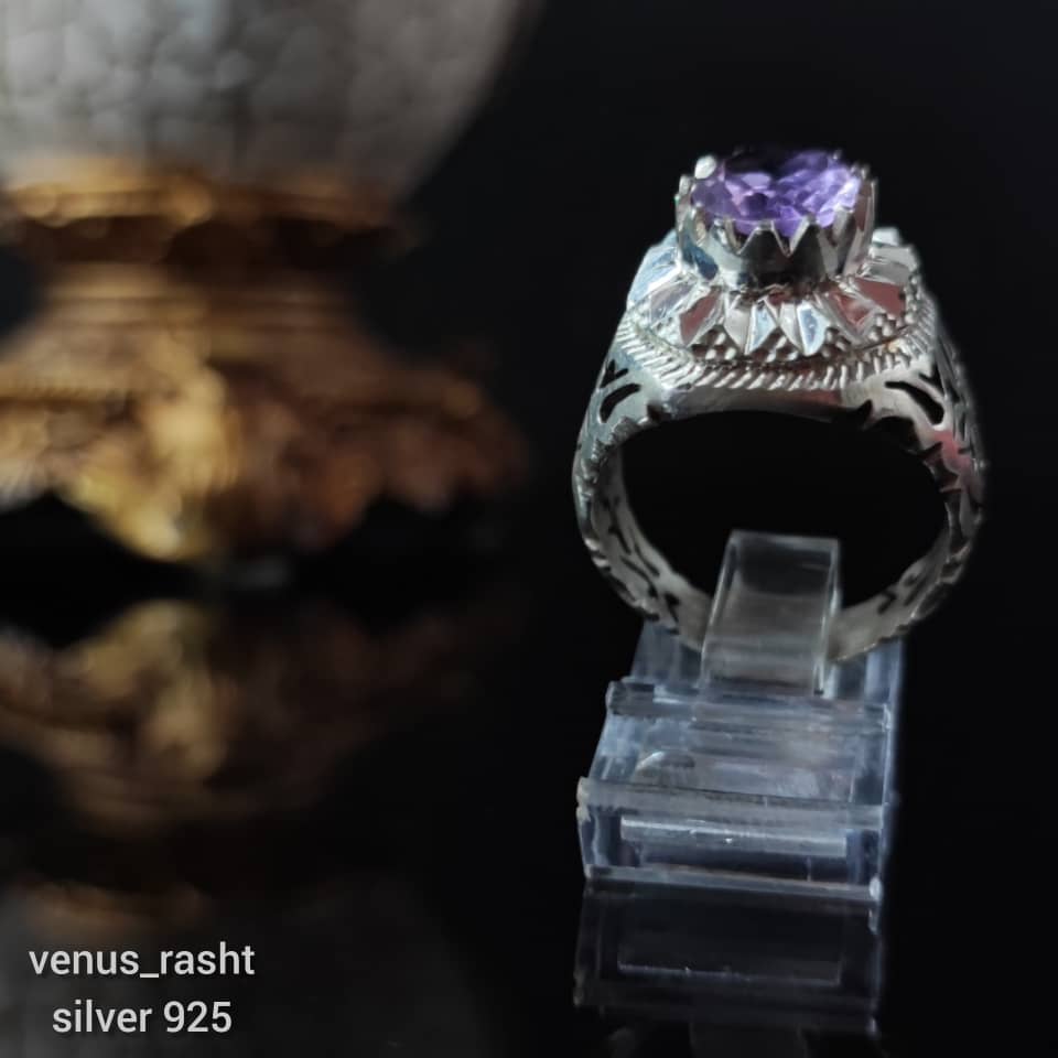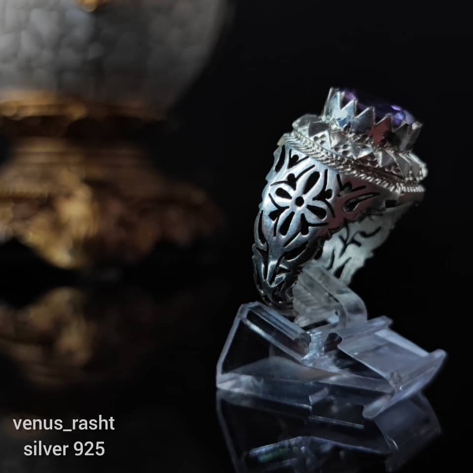 انگشتر مردانه با سنگ آمیتیست ارغوانی