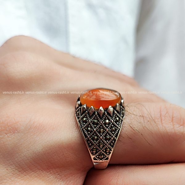انگشتر نقره مردانه با سنگ اصل عقیق یمنی