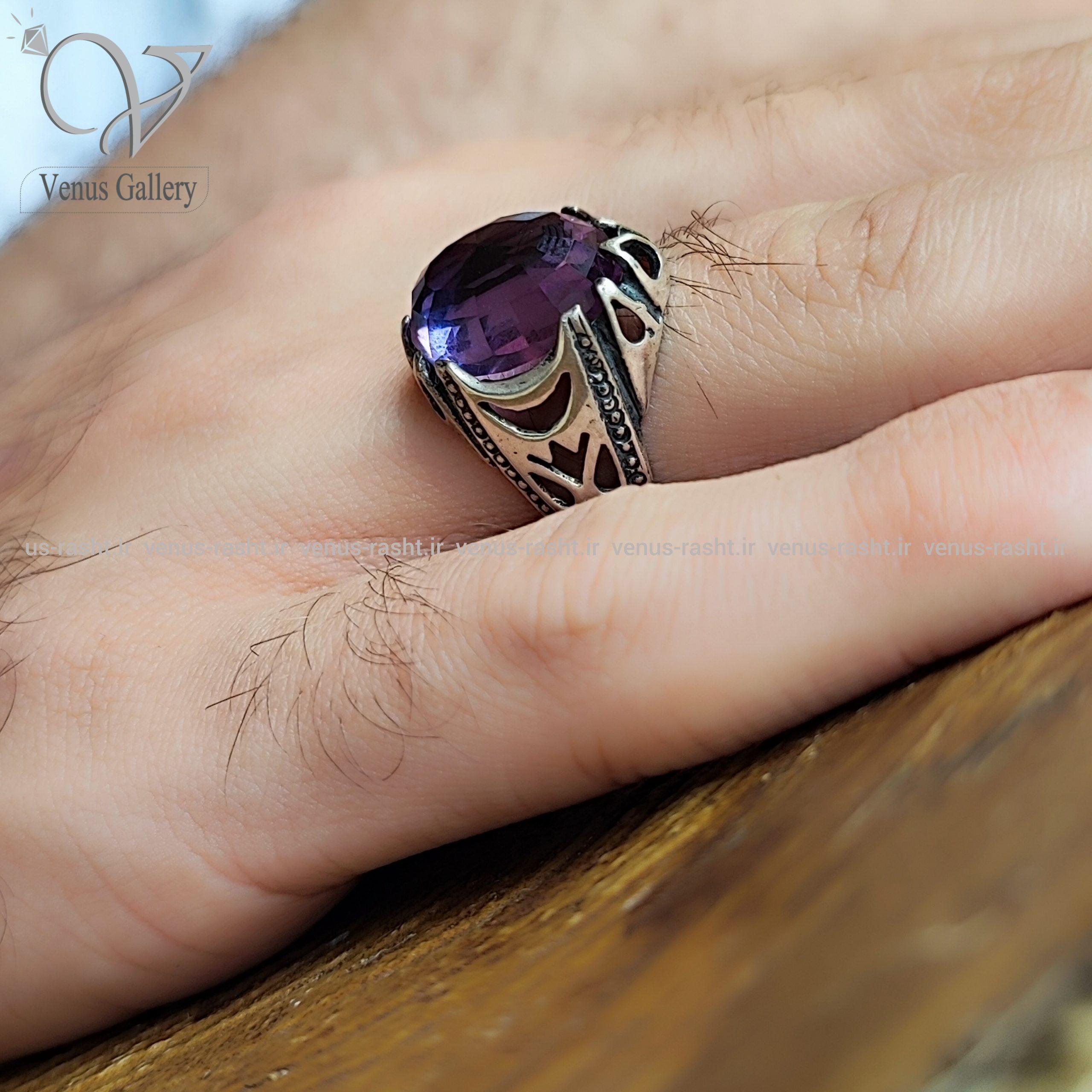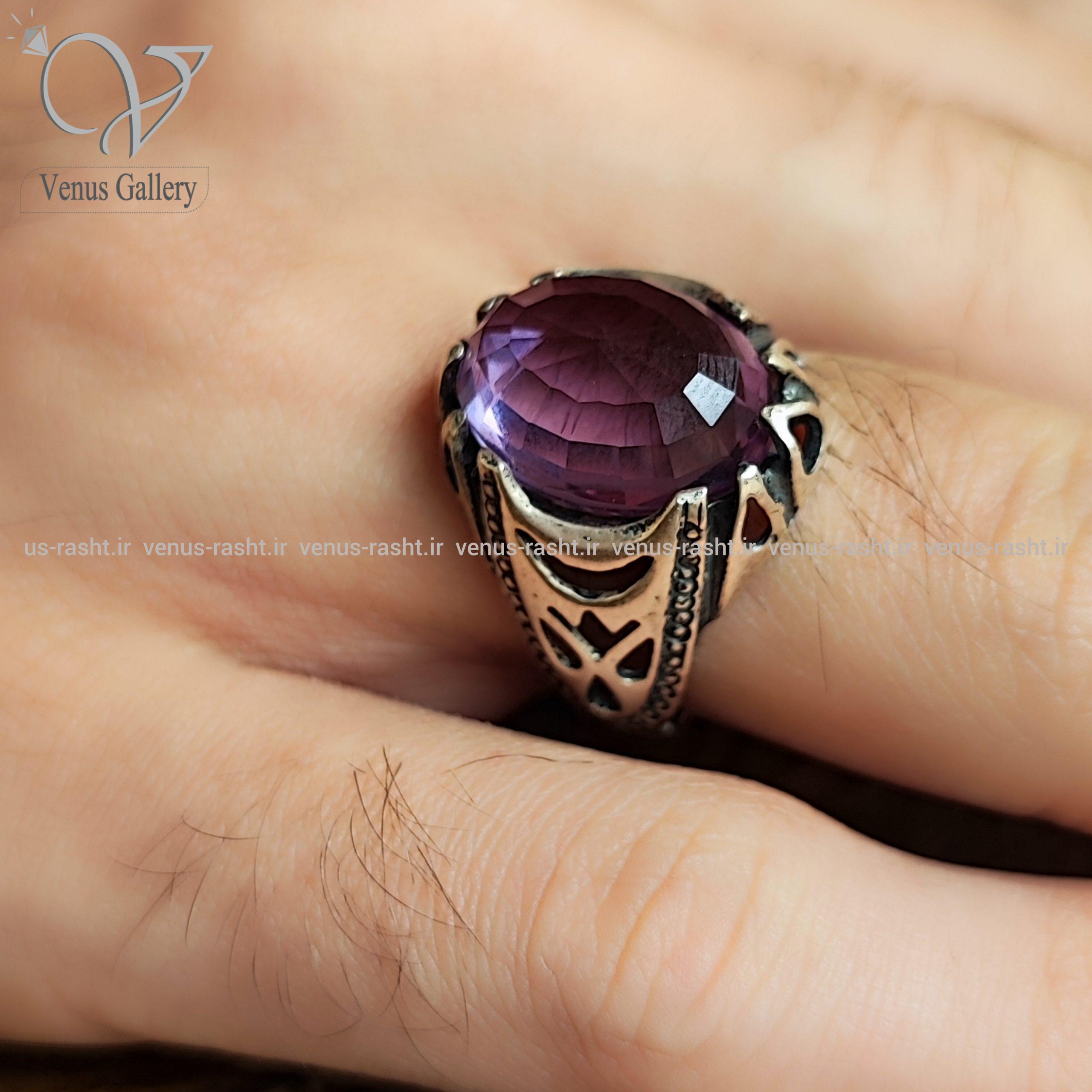 انگشتر نقره مردانه با سنگ بنفش ارغوانی کد 2337