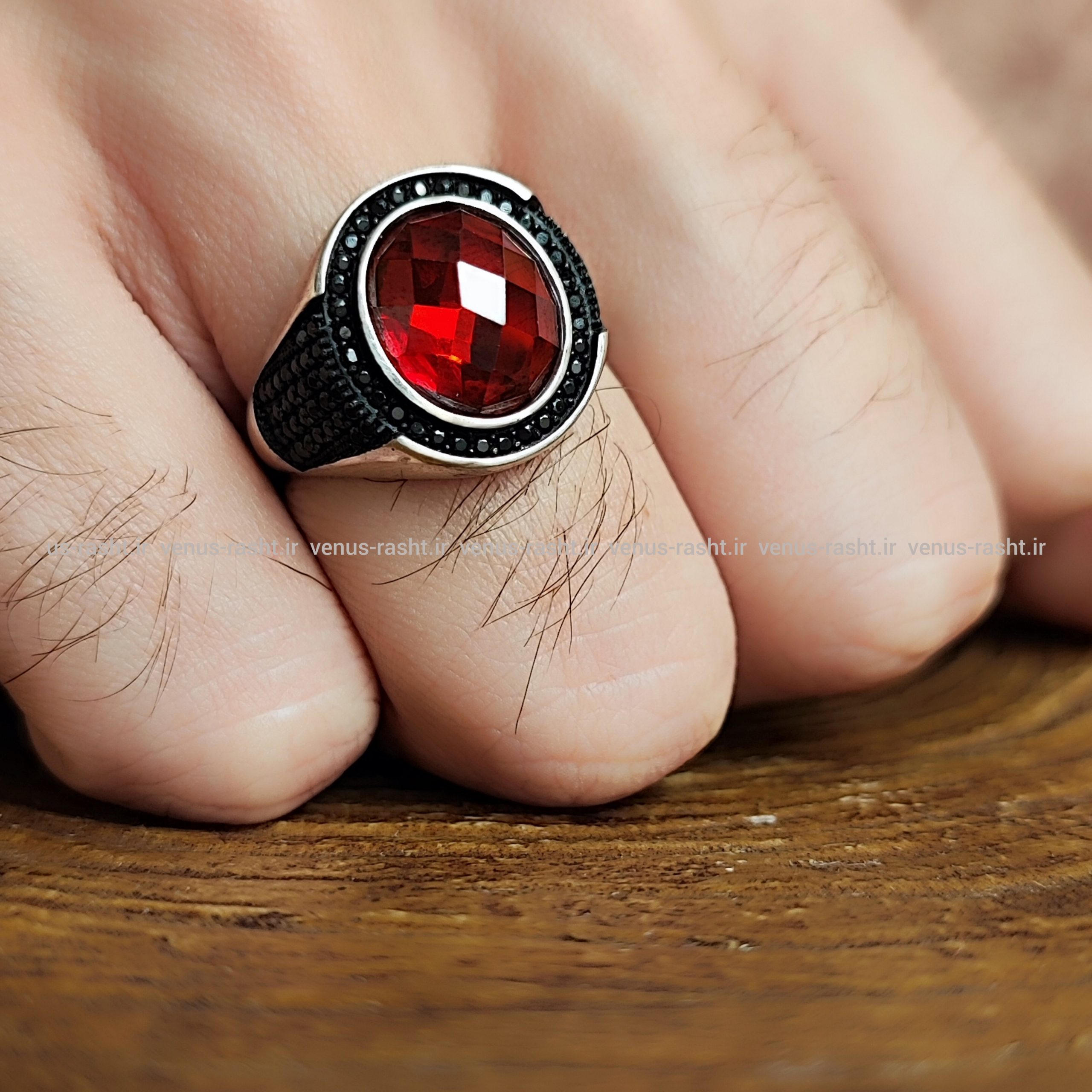انگشتر نقره مردانه با سنگ کریستال اتمی قرمز کد 4611